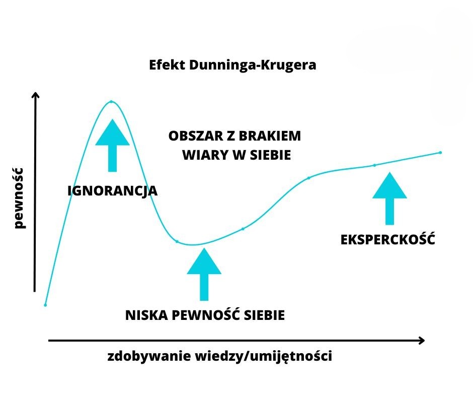 Efekt Dunninga-Krugera to zjawisko psychologiczne, w którym osoby z niewielką wiedzą przeceniają swoje umiejętności i kompetencje. Z kolei osoby z większym doświadczeniem i wiedzą są bardziej powściągliwe w swoich wypowiedziach, ponieważ lepiej zdają sobie sprawę z tego, czego jeszcze nie wiedzą.